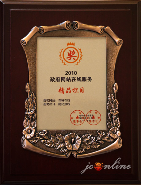 近年來,“晉城在線”已成為山西省內(nèi)外知名的信息站點,先后獲得了“中國城市門戶網(wǎng)站十大公信品牌”、“2008年中國政府門戶網(wǎng)站優(yōu)秀獎”、“2009年中國政府門戶網(wǎng)站優(yōu)秀獎”、“中國優(yōu)秀誠信品牌”、““2008年中國政府門戶網(wǎng)站信息公開領(lǐng)先獎”、“全國地方門戶網(wǎng)站十佳品牌”、“全國地方網(wǎng)站最具創(chuàng)新發(fā)展?jié)摿ζ放啤、?010年中國政府網(wǎng)站領(lǐng)先獎”等諸多榮譽(yù)稱號。
